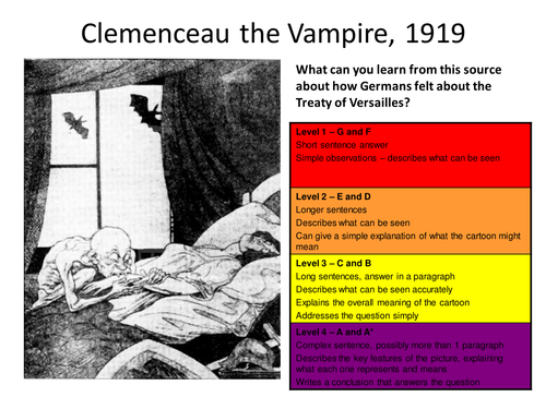 Clemenceau the vampire, 1919 what is the action in this cartoon suggesting about france? This cartoon of georges clemenceau, leader of france during world war i, appeared in a german newspaper in 1919. The cartoon also shows a german perspective. It shows that germany thought it was clemenceau to blame for the harshness of the treaty of versailles. First broadcast of i love lucy , see it now , dragnet , the hallmark hall of fame , search for tomorrow , sua vida me pertence , love of life and the roy rogers show